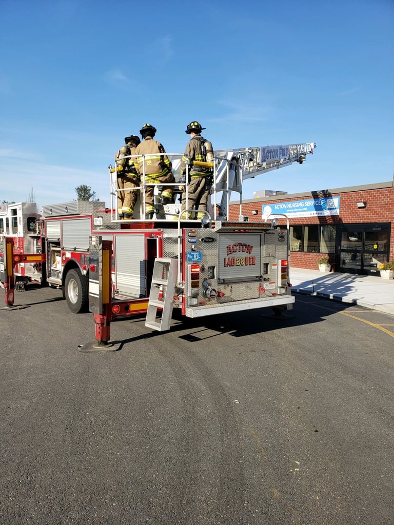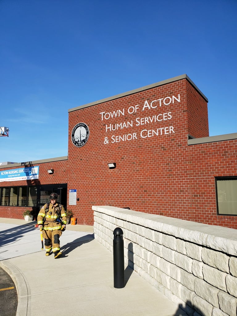 Firefighter Gage Cummings was part of the crew responding to an odor of smoke at the Town of Acton Human Services and Senior Center this morning. (Photo courtesy of Acton Fire Department)