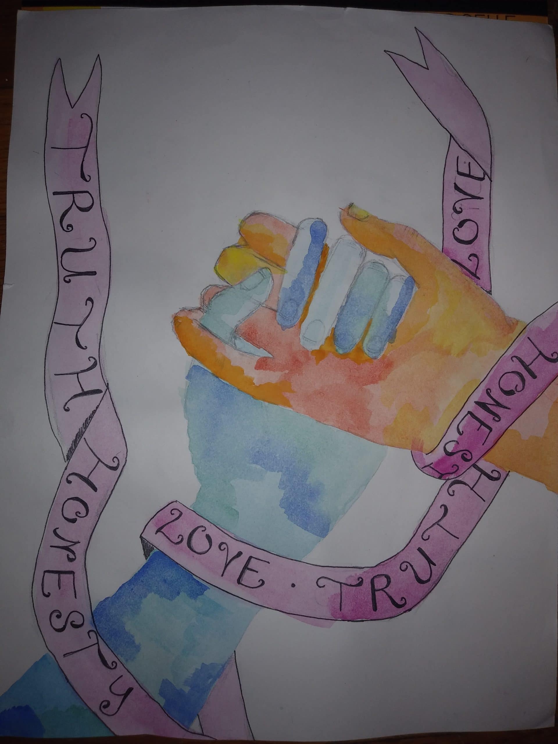- “Hand in Hand” by Isabella Jardin, a seventh grader from Ottoson Middle School in Arlington.