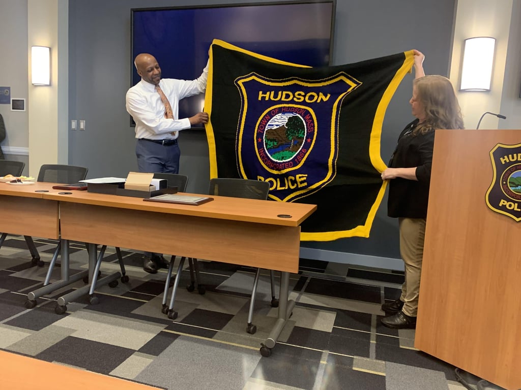 The Hudson Police Department welcomed chiefs from throughout the region — including one of his police academy classmates, along with Middlesex District Attorney Marian Ryan, representatives from the National Organization of Black Law Enforcement Executives (NOBLE) and — most importantly — his family.