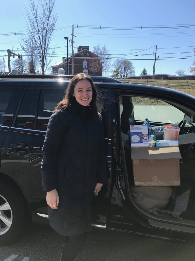 Beth Israel Deaconess Nurse Hannah Sperry picked up donated medical supplies from Essex Tech on Saturday for the staff at Beth Israel Deaconess. (Courtesy Photo Essex Tech)