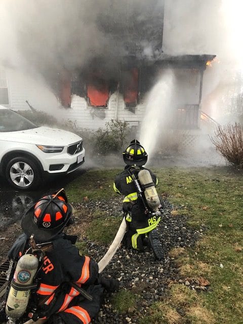 Upon arrival, firefighters observed heavy flames and smoke coming from the two-family home. Three residents from the unit where the fire started and two residents from the adjacent unit were all safely out of the building.