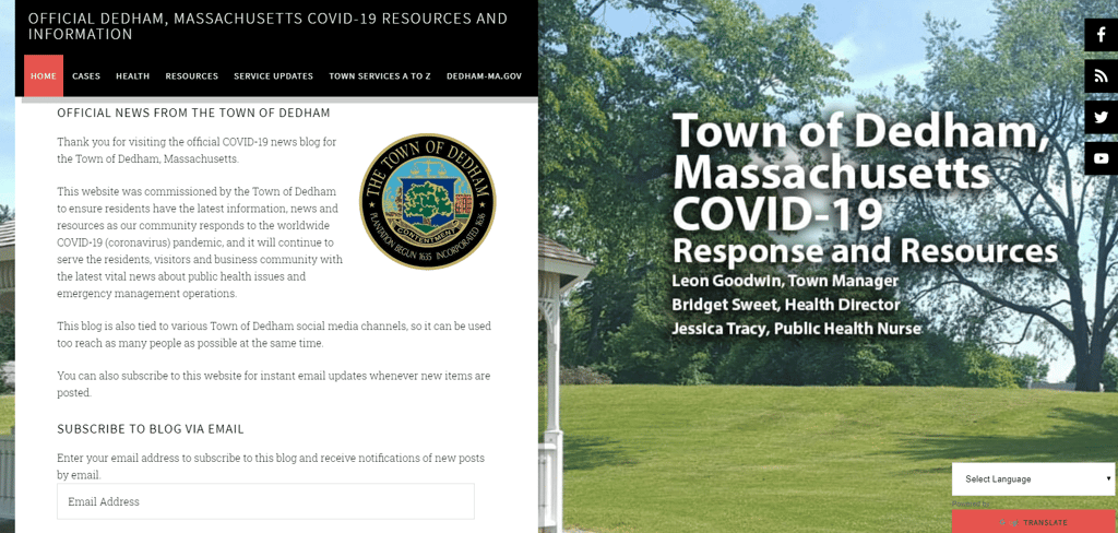 The new website, dedhamcovid19.com, will serve as a one-stop resource for residents, visitors, and business owners to receive all town updates as the COVID-19 situation develops. Visitors can subscribe via email to receive notifications for new posts.