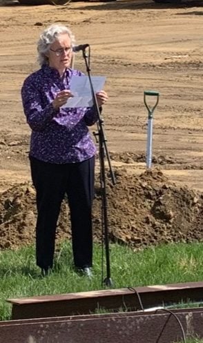 The Saturday morning event was limited to ten people including administrators, school board members, local town council and select board members from each district town, the construction manager, architect and a representative of the Oyster River Middle School Go Vote Committee in order to follow social distancing mandates by the state put in place to prevent the spread of COVID-19. Those who attended wore face coverings, except when speaking into the microphone, and remained six feet apart. The district tentatively plans to hold future events, pending the loosening of social distancing guidelines and restrictions, to celebrate the building project.