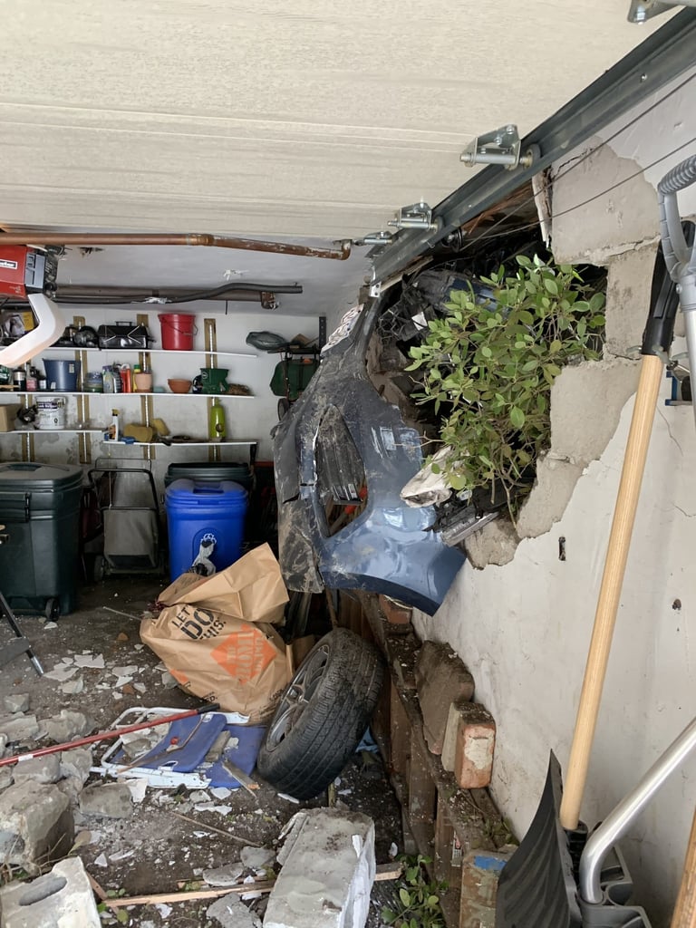 A preliminary investigation into the crash indicates that the vehicle left the roadway, traveled through multiple lawns and briefly became airborne before ultimately coming to a stop after striking and partially crashing through the foundation wall on the side of the home.
