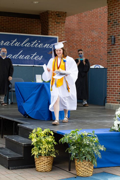 Oyster River High School held a socially distanced, in-person commencement ceremony on Friday, June 12 from noon to 7 p.m. Graduate Cecilia Drysdale sang the national anthem. Students and their families arrived by car to the high school where students were then able to get out of the car with their families. Students walked across the stage after their name was read and picked up their diploma from a table on stage.
