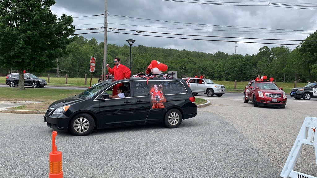 The parade followed an 11-mile route through the Town of Holliston, concluding at Holliston High School. Houses along the parade route, which began at Placentino Elementary School, were decorated in support of the graduating class, while cars featured signs with supportive messages and were decorated in the school’s red and white colors.