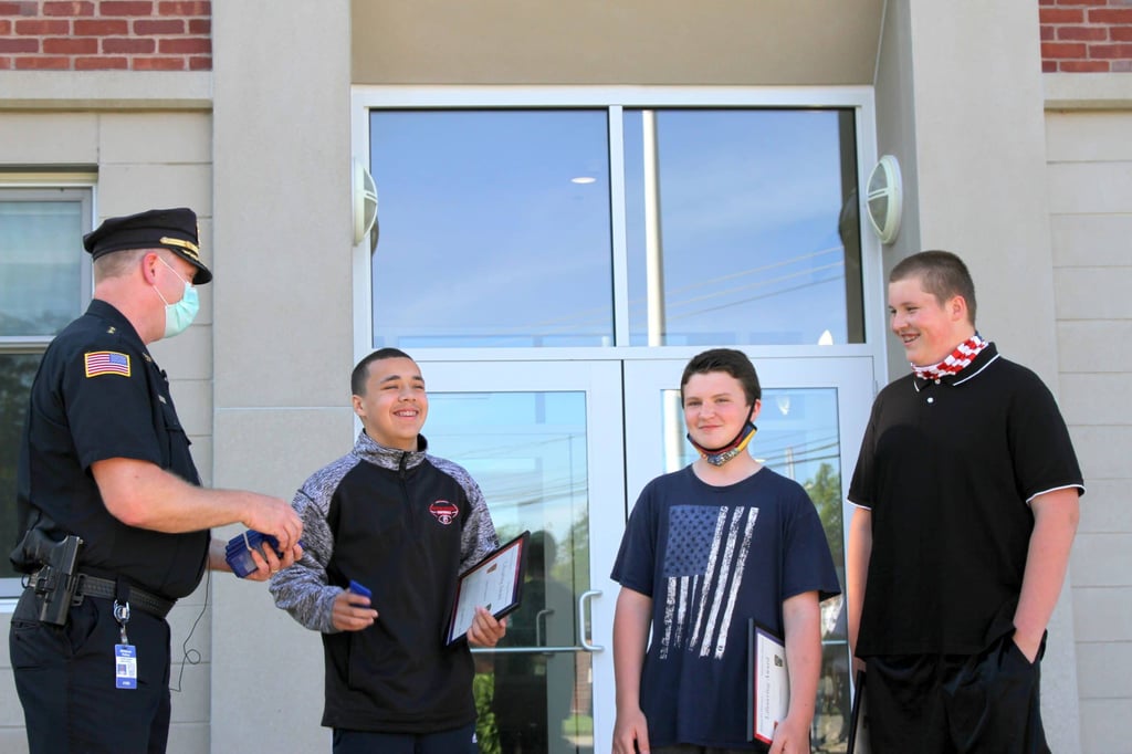 For their quick thinking and sound judgement, Chief Hanlon presented each of the boys with a framed “Lifesaving Award” Tuesday on behalf of the Whitman Police and Fire Departments. The award read: