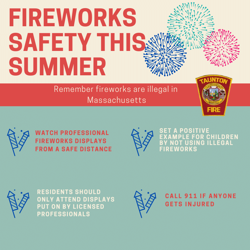 TAUNTON — As the Fourth of July and summer celebrations approach, Chief Timothy Bradshaw and the Taunton Fire Department would like to remind residents that the use of fireworks is illegal in Massachusetts.