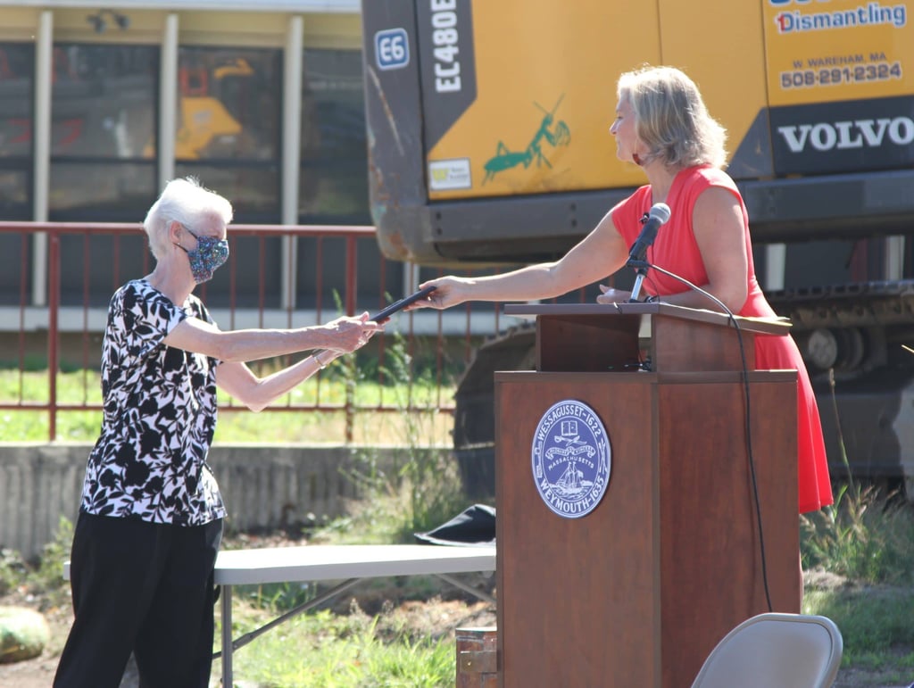 Prior to the groundbreaking, Weymouth School Committee Chair Lisa Belmarsh presented community member Laurie Hansen with the Massachusetts Association of School Committee’s Community Leader for Public Education Award.