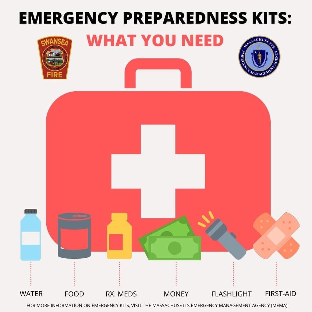 Also, as a part of Emergency Preparedness Month the Swansea Fire Department encourages families to build an emergency kit. MEMA recommends that emergency kits include essential items that will provide your family members with basic necessities for up to three days in an emergency event.
