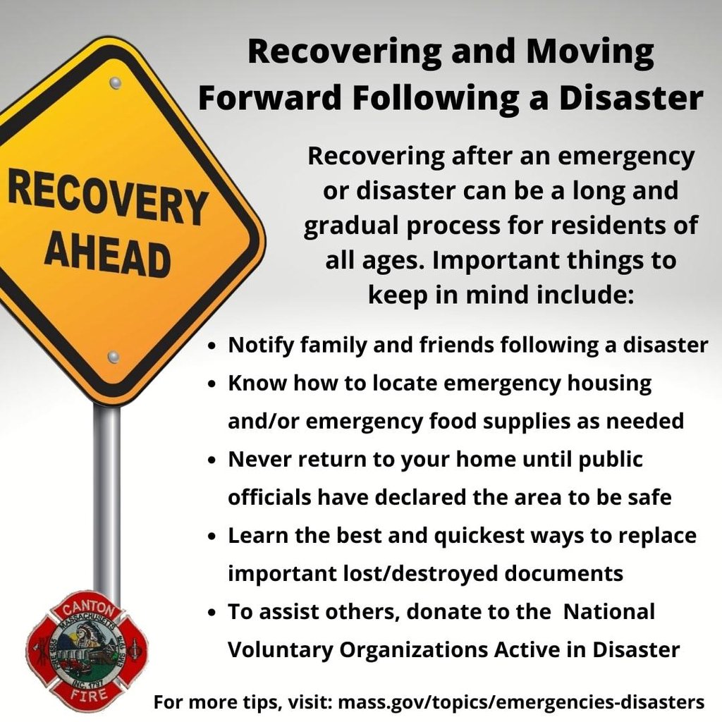 The Canton Fire Department encourages residents to follow these tips during the aftermath of an emergency, provided by USA.gov: