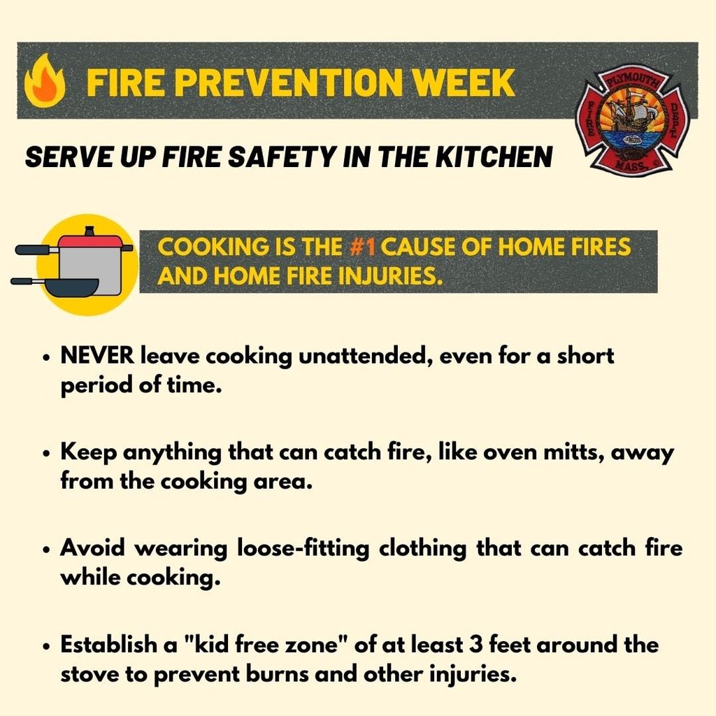 PLYMOUTH — As part of National Fire Prevention Week, Chief Edward Bradley and the Plymouth Fire Department would like to provide cooking safety tips and are also encouraging everyone to create a home escape plan in the event of a fire.