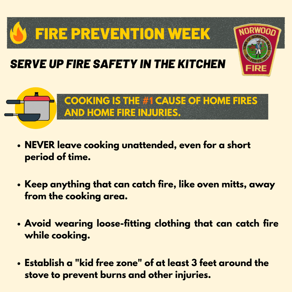 NORWOOD — As part of National Fire Prevention Week, Chief George Morrice and the Norwood Fire Department would like to provide cooking safety tips and are also encouraging everyone to create a home escape plan in the event of a fire.