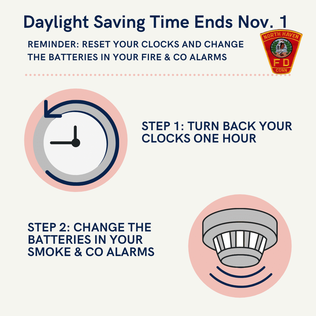 NORTH HAVEN — Chief Paul Januszewski and the North Haven Fire Department encourage residents to test their smoke and carbon monoxide detectors when setting their clocks back for daylight saving time.