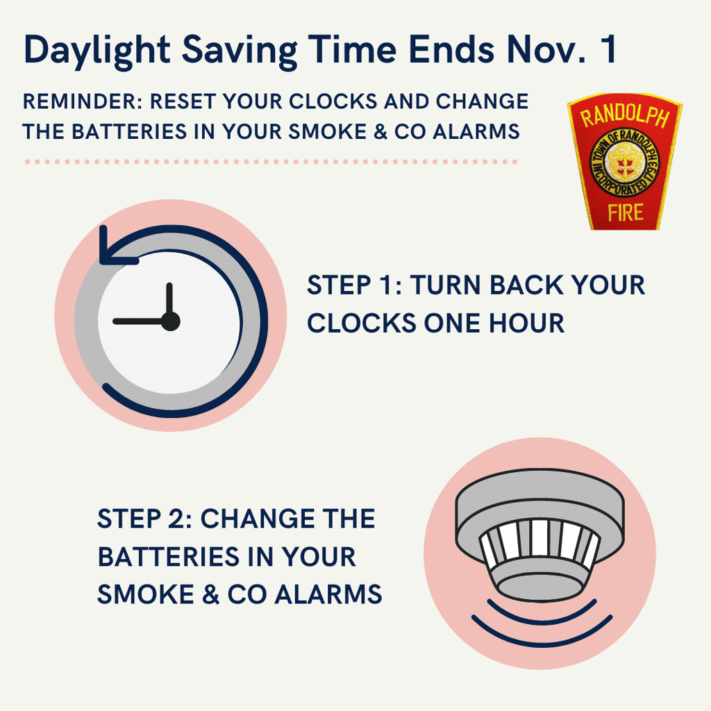 RANDOLPH — Chief Richard Donovan and the Randolph Fire Department encourage residents to test their smoke and carbon monoxide alarms when setting their clocks back for daylight saving time.