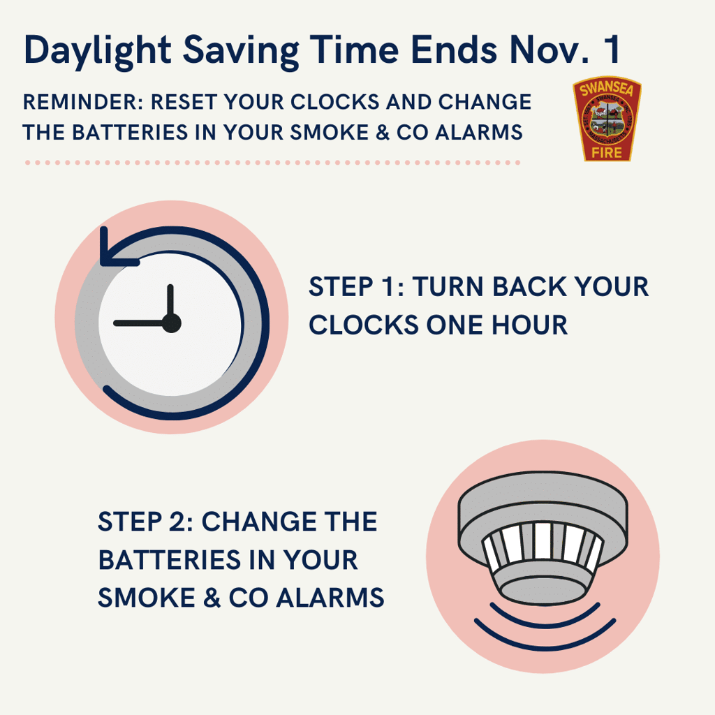 SWANSEA —Chief Eric Hajder and the Swansea Fire Department encourage residents to test their smoke and carbon monoxide alarms when setting their clocks back for daylight saving time.