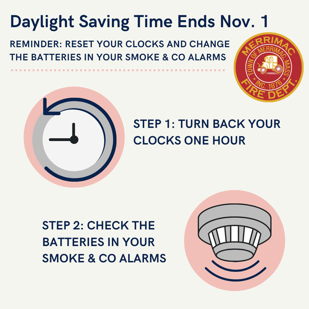 MERRIMAC — Chief Larry Fisher and the Merrimac Fire Department encourage residents to test their smoke and carbon monoxide alarms when setting their clocks back for daylight saving time.