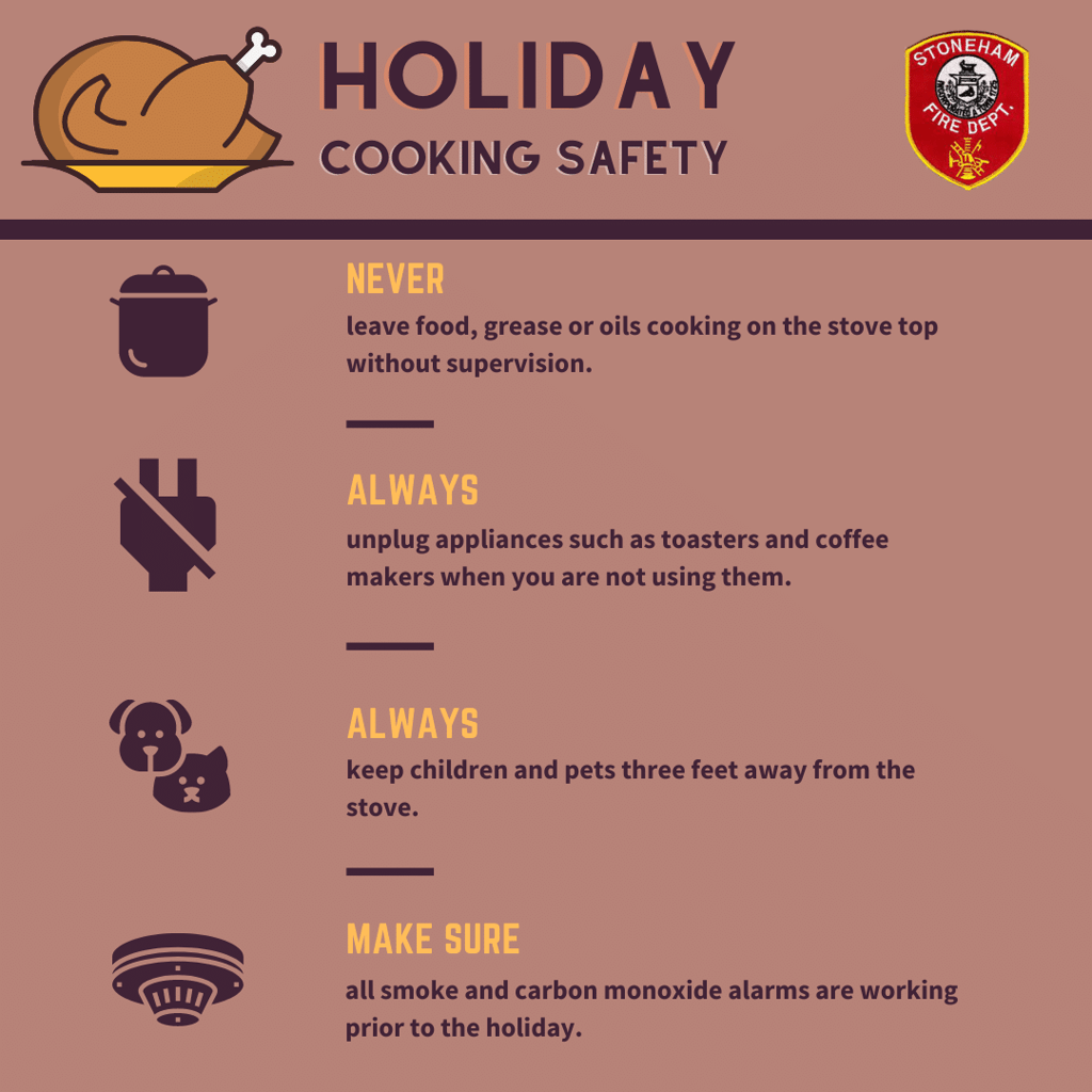 To prevent any seasonal cooking home fires, the Stoneham Fire Department wishes to share the following tips from the National Fire Protection Agency so families can prepare holiday meals without the risk of tragedy: