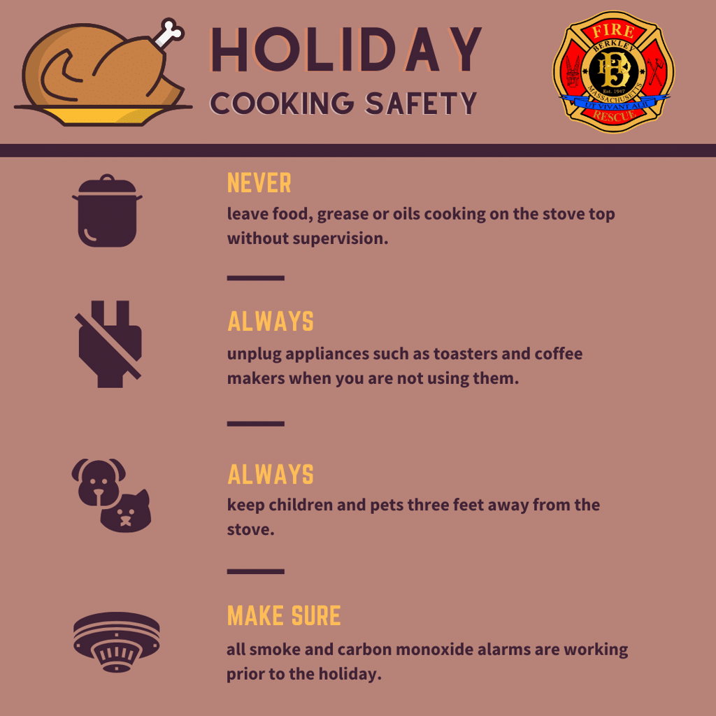 BERKLEY — Chief Scott Fournier and Berkley Fire Rescue would like to provide safety tips to ensure residents stay safe while baking and preparing their holiday meals over the coming weeks.