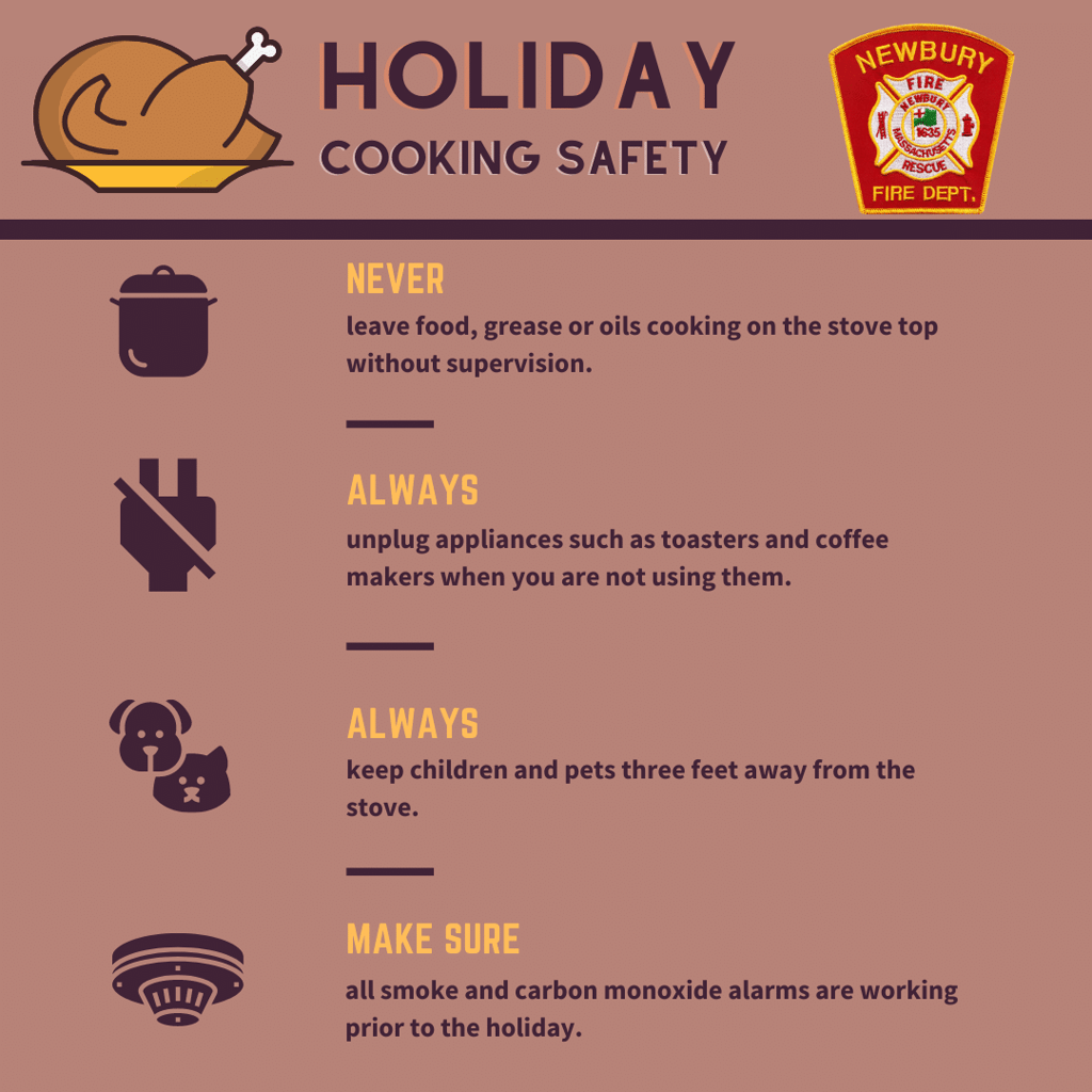 NEWBURY — Chief Douglas Janvrin and the Newbury Fire Department would like to provide safety tips to ensure residents stay safe while baking and preparing their holiday meals over the coming weeks.