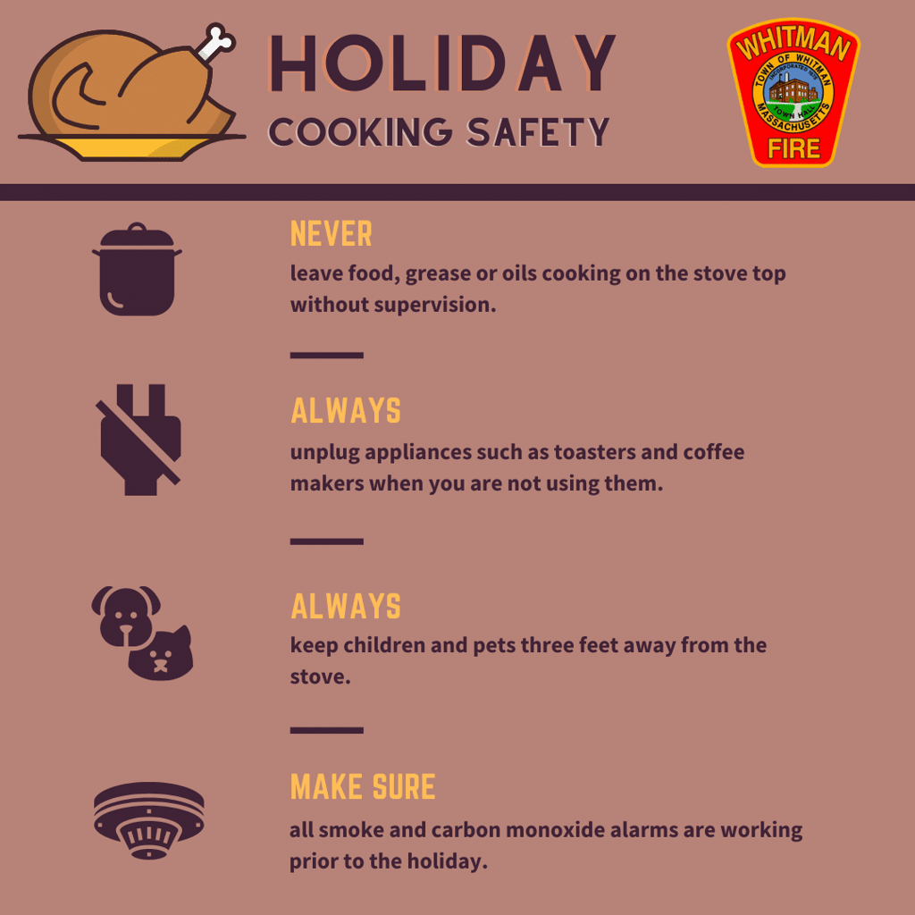 If you have any questions about home cooking safety, please contact the Whitman Fire Department at 781-447-7677.
