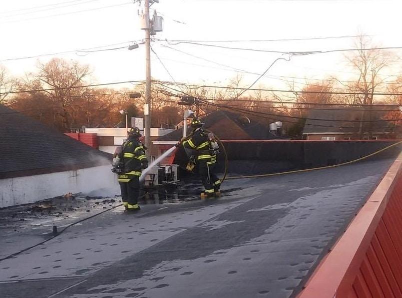 Firefighters used ladders to get onto the roof and were able to extinguish the fire before it spread to the other businesses in the strip mall. The fire was contained to the roof and ceiling of the eyecare business. The business also sustained water and smoke damage on the inside.