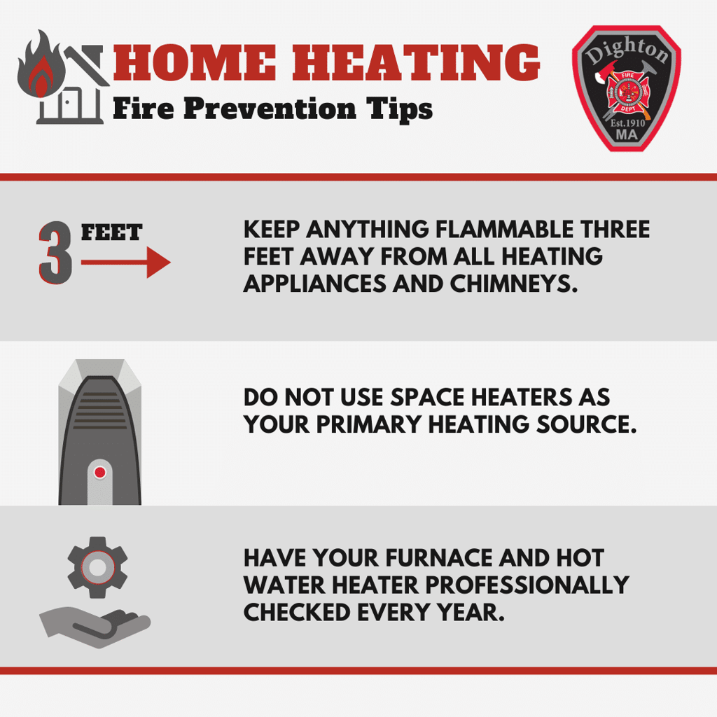If you have any questions about safely heating your home, please contact the Dighton Fire Department at 508-669-6611.