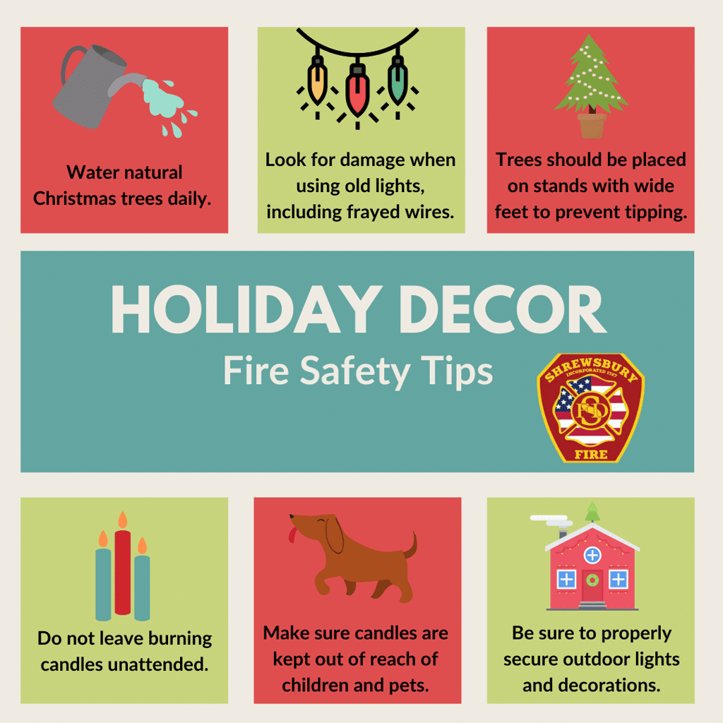 The Shrewsbury Fire Department wishes to share the following holiday fire safety tips from the NFPA: