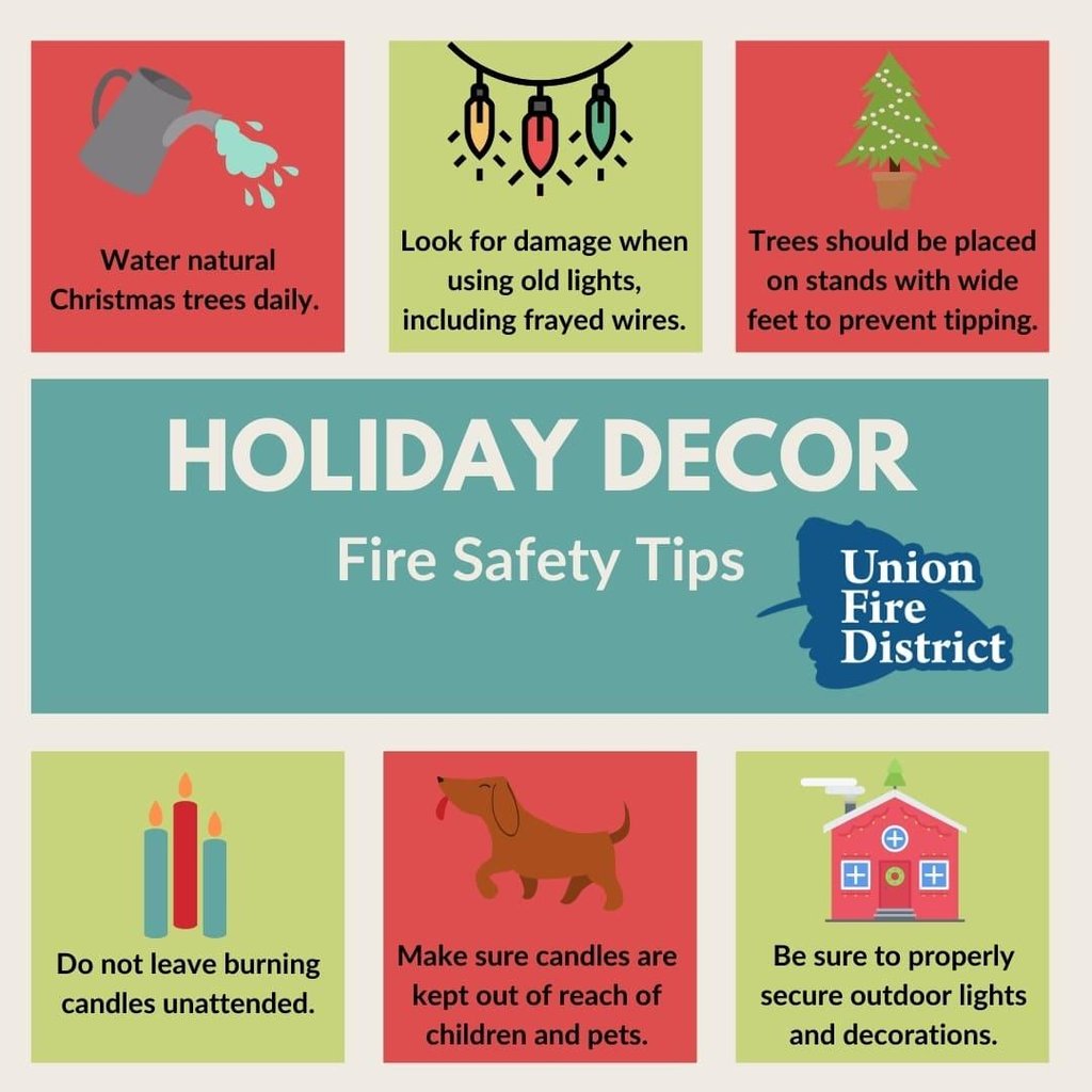 “The holidays are a time to celebrate, but it is important to remember the following safety tips when decorating your home and using potentially hazardous materials such as electrical wires and burning candles,” Chief Pinch said. “As always, the Union Fire District wishes all of our residents a safe and happy holiday season.”