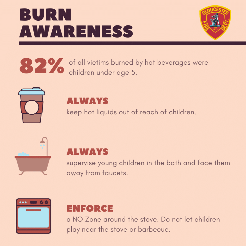 GLOUCESTER — As a part of Burn Awareness Week, Chief Eric Smith and the Gloucester Fire Department would like to remind residents of safety tips and precautions in hopes of preventing burn-related injuries.
