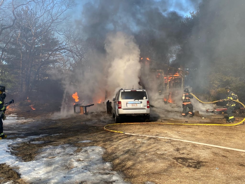 As crews began to clear the scene of the dryer fire, coverage crews were dispatched at 8:25 a.m, to a report of a garage fire at 50B New Way Lane. Upon arrival, firefighters found the detached garage fully engulfed in flames and worked to extinguish the blaze and prevent it from spreading to the surrounding woods.