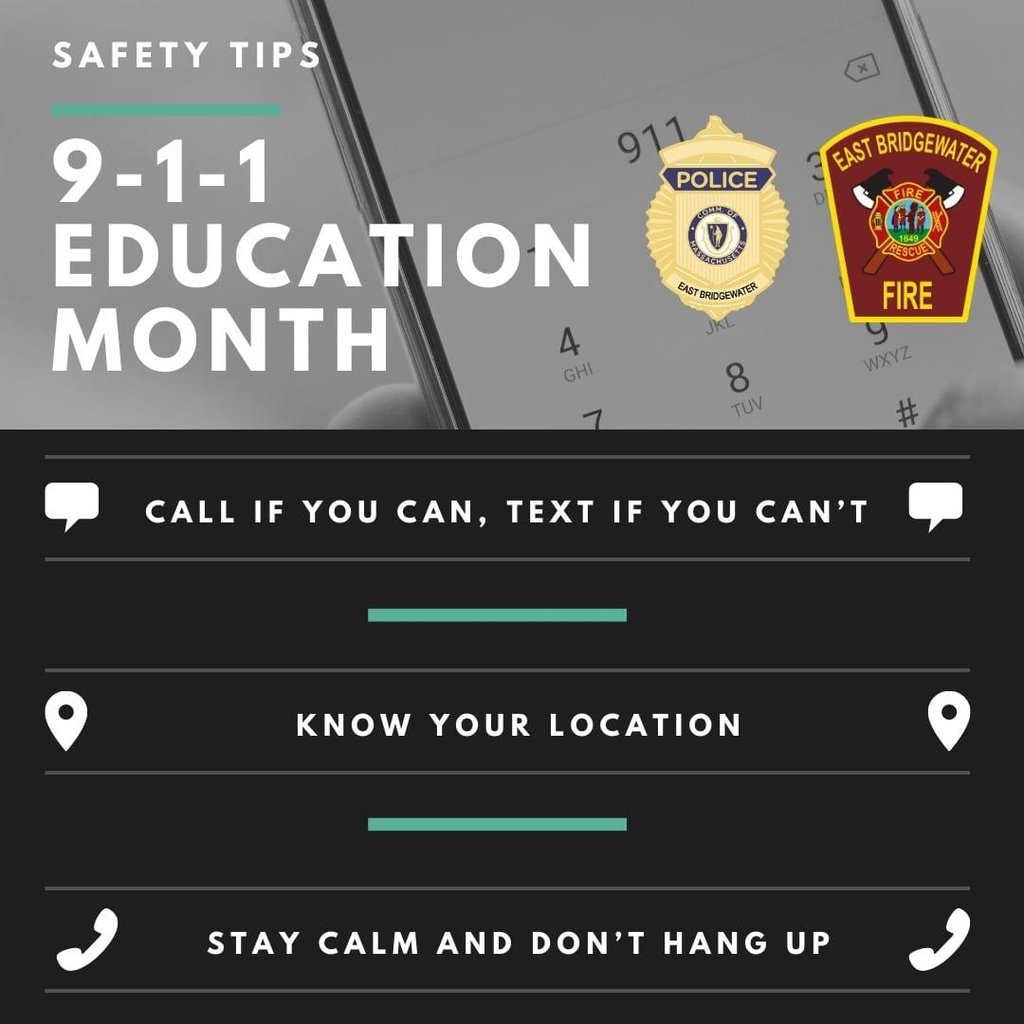 EAST BRIDGEWATER — Police Chief Paul O’Brien and Fire Chief Timothy Harhen would like to share guidelines and tips in regards to accessing help in the midst of an emergency during National 9-1-1 Education Month.