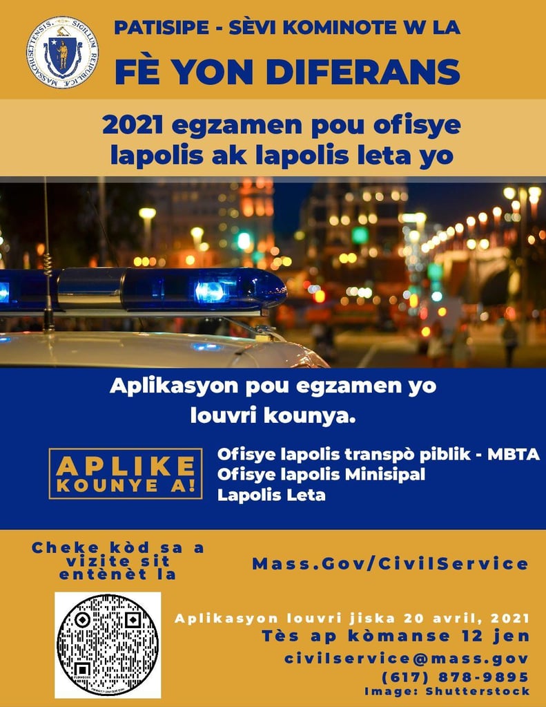 “This exam is an important first step when pursuing a career in law enforcement and helps provide departments throughout the Commonwealth with a list of qualified candidates,” Chief Valadas said. “We hope you will apply to take this exam if you are interested.”