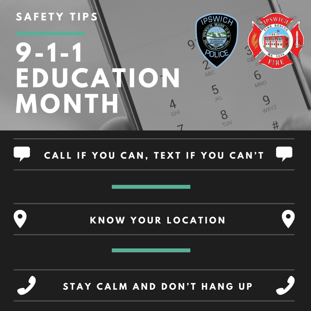 IPSWICH — Police Chief Paul A. Nikas and Fire Chief Andy Theriault would like to share guidelines and tips in regard to accessing help in the midst of an emergency during National 9-1-1 Education Month.