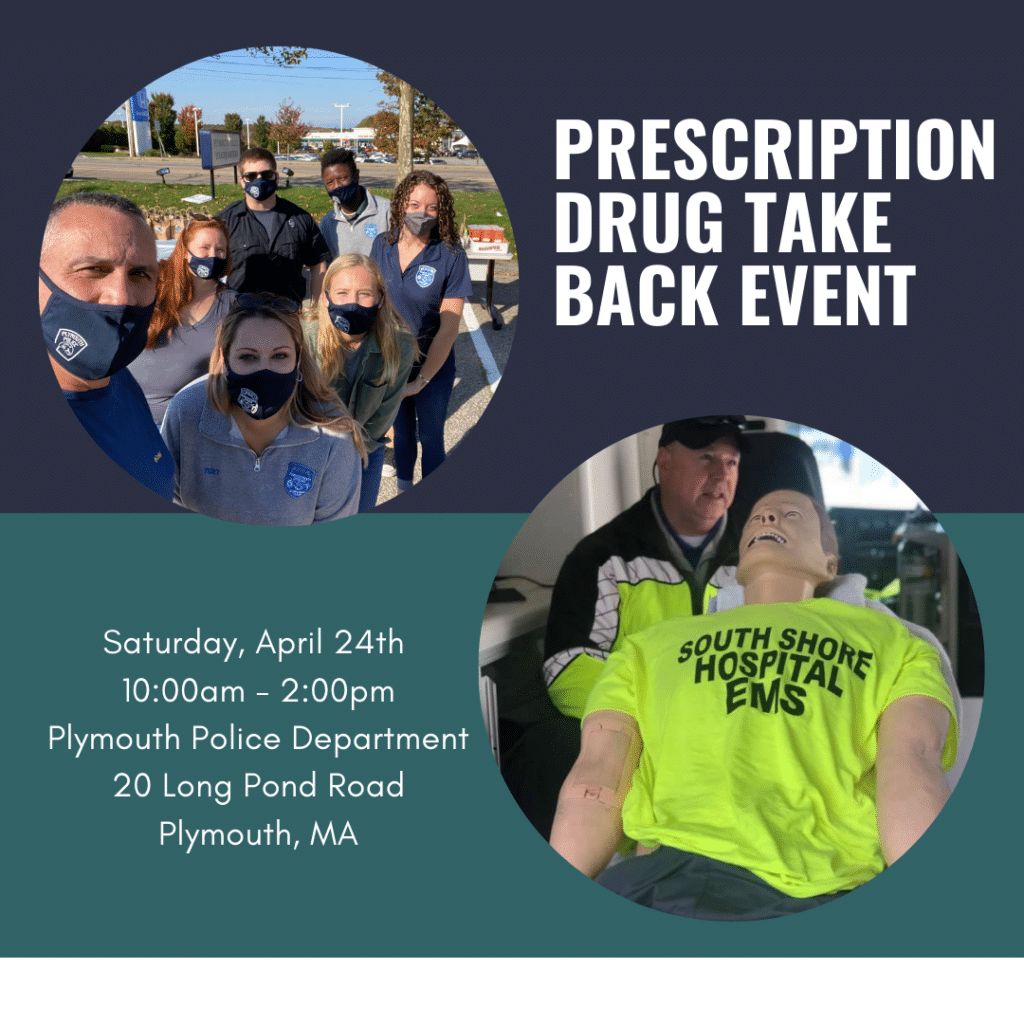 The drug take-back event, which is being held as part of National Drug Take-Back Day, will allow residents to clean out their medicine cabinets and discard any unwanted or expired prescription medications. No liquids please. The Plymouth Fire Department will also be accepting sharps for disposal.