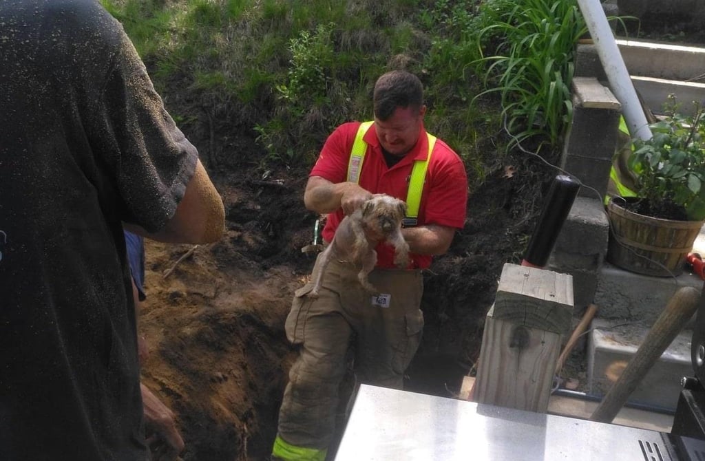 Crews returned at approximately 10 a.m. the following morning, and could still hear the dog making noise. With assistance from bystanders the entrance to the burrow was secured and crews dug further, eventually finding the dog and pulling him out.