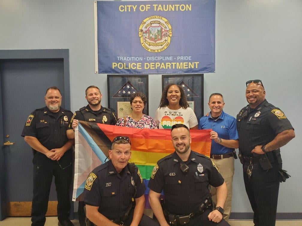 Taunton Police Department Thanks Local Organization T.R.U.E. Diversity for Pride Pin, Flag Donation