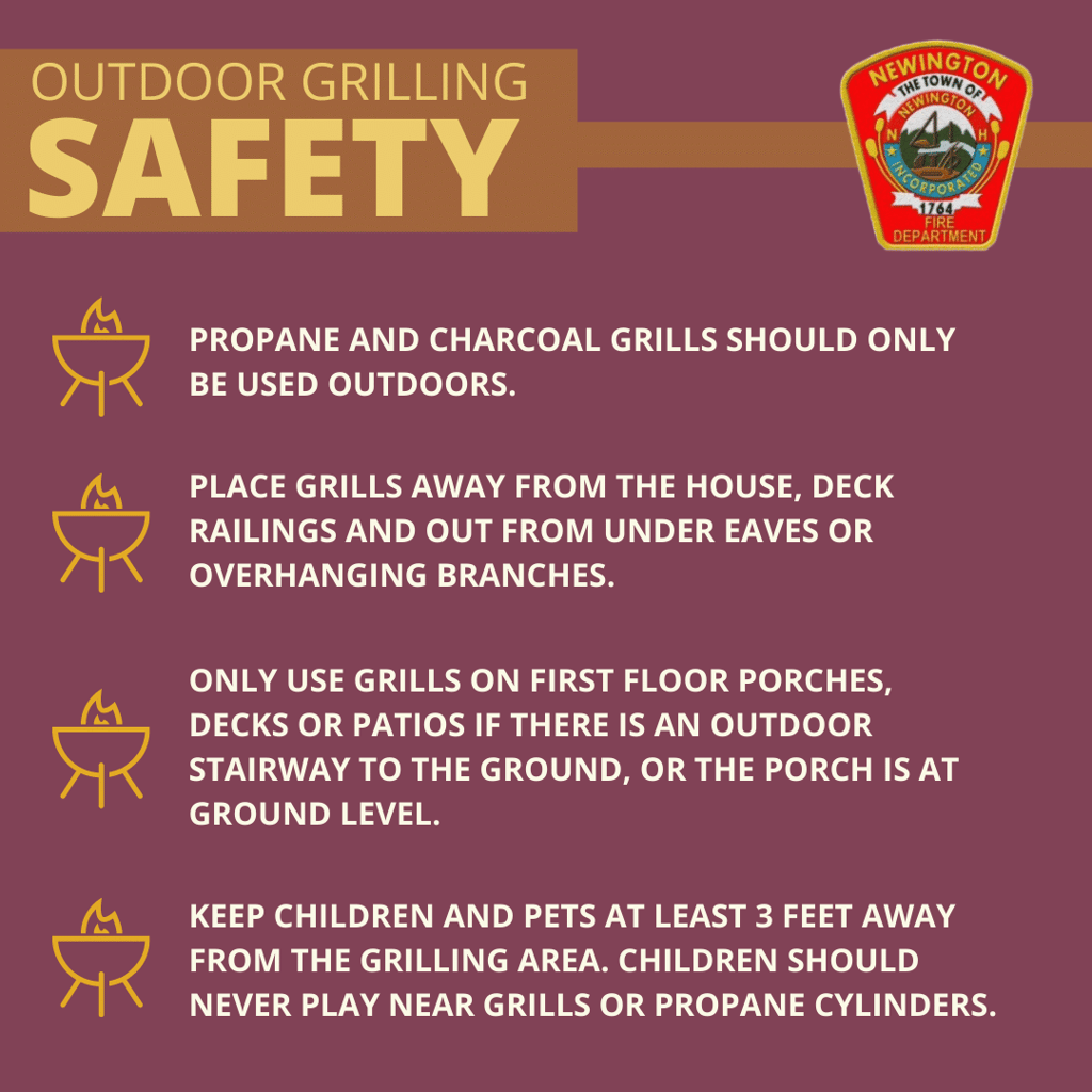 NEWINGTON, N.H. — Fire Chief E.J. Hoyt would like to remind Newington residents to practice safe grilling habits while cooking outdoors this season.