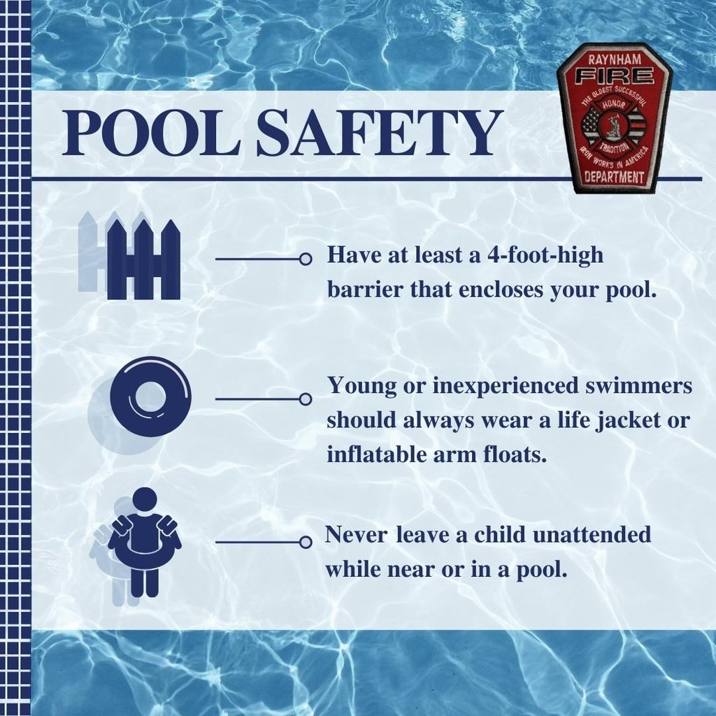 The Raynham Fire Department considers pool safety to be a top priority, and reminds residents to follow these safety regulations and recommended precautions:
