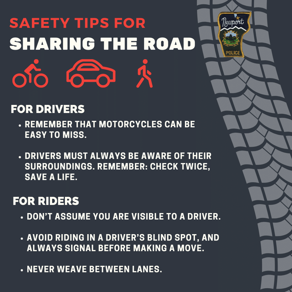 NEWPORT, VERMONT — With summer in full swing, Chief Travis R. Bingham and the Newport Police Department wish to remind residents of important safety tips for pedestrians, bicyclists and motorcycle drivers.