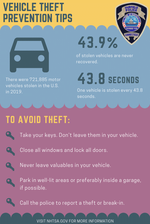 FAIRFIELD — Chief Robert Kalamaras and the Fairfield Police Department would like to advise residents to properly secure their vehicles to prevent break-ins and avoid being easy targets for thieves this season.