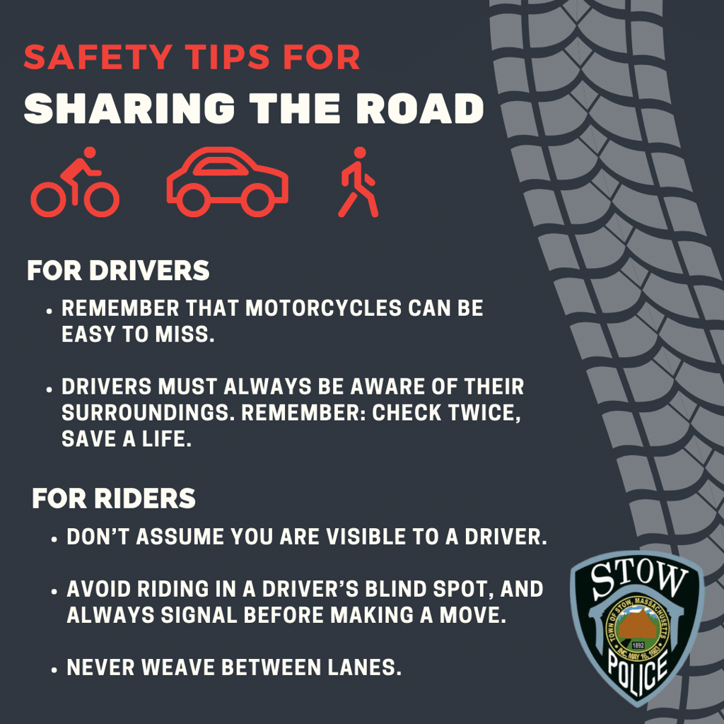 STOW — With the arrival of warmer weather, Chief Michael Sallese and the Stow Police Department wish to remind residents of important safety tips for pedestrians, bicyclists and motorcycle drivers.