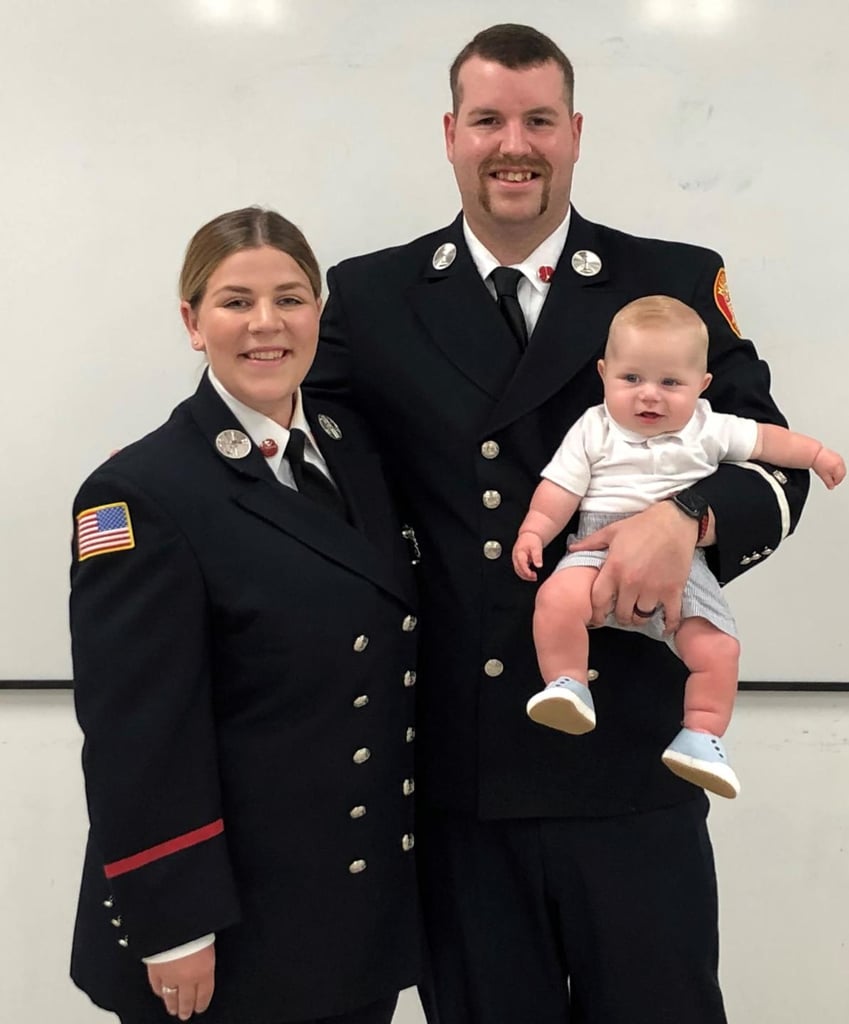 Firefighter/Paramedic Nicole Sevigny, shown with her husband, Lt. Shane Sevigny, and their son, Wyatt. (Photo courtesy of the Merrimac Fire Department)