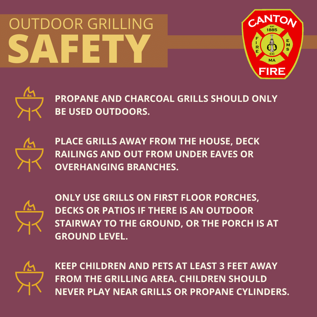 CANTON —  Chief Charles Doody and the Canton Fire Department would like to remind Canton residents to practice safe grilling habits while cooking outdoors.