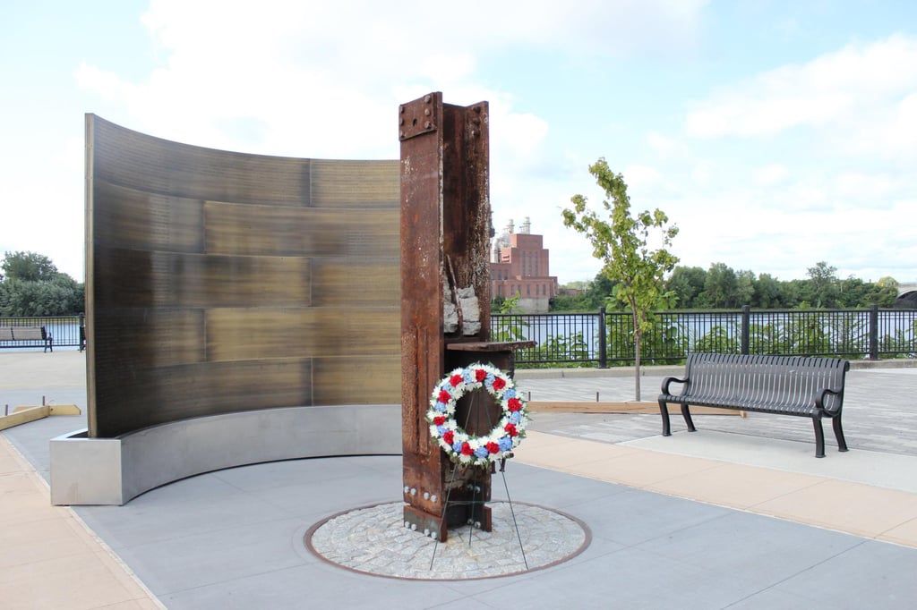 The 9/11 memorial, which is located in Riverfront Park, was unveiled in 2019 and dedicated to the public safety personnel who died in the attacks. It was gifted by the Spirit of Springfield to the City of Springfield in 2020. (Photo courtesy Spirit of Springfield)