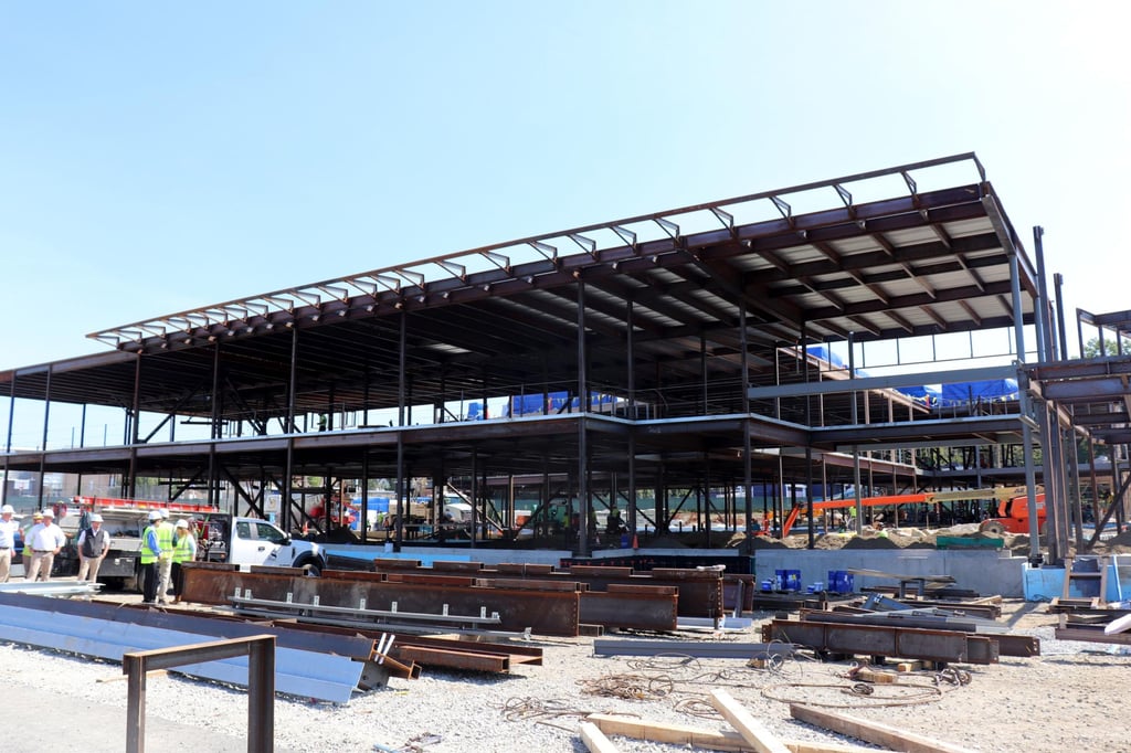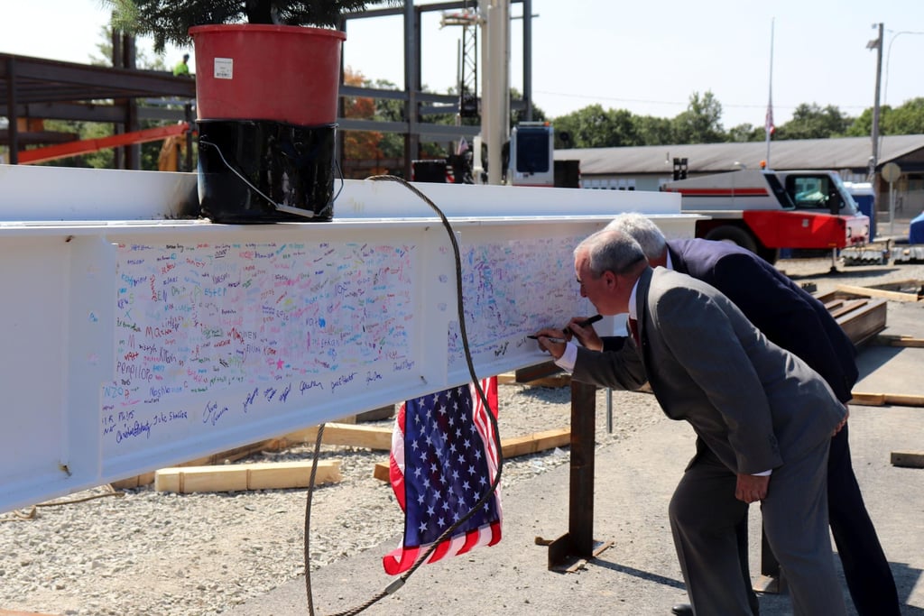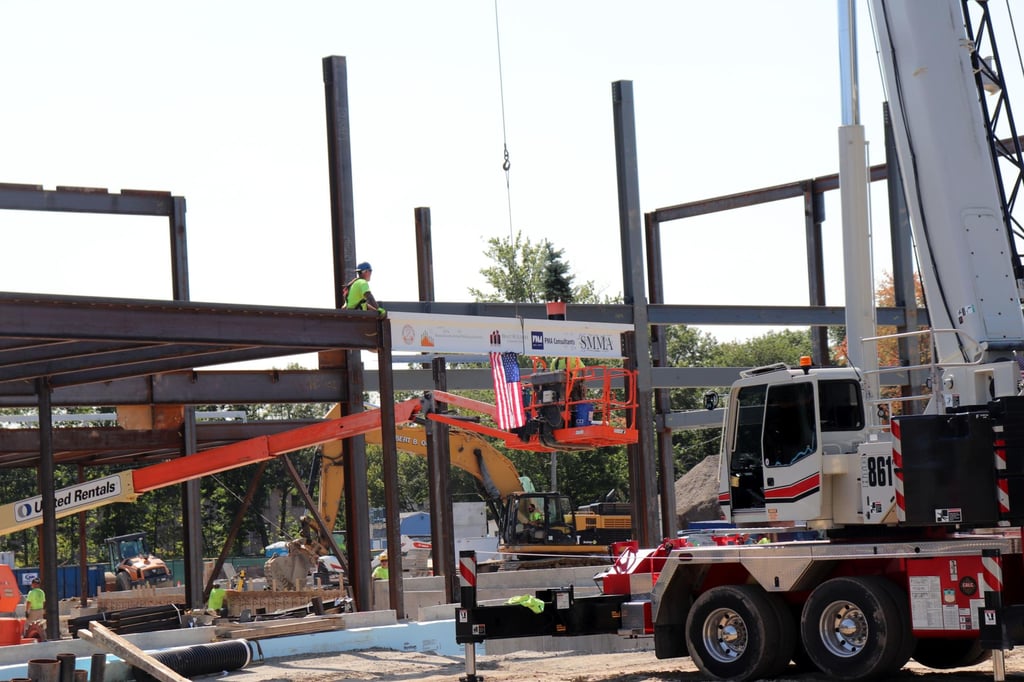 As part of the event, a beam was put into place to mark the conclusion of the current construction phase of the project. The district made three banners — one for each of the district’s three elementary schools — and elementary students signed the banners which were then attached to the beam.
