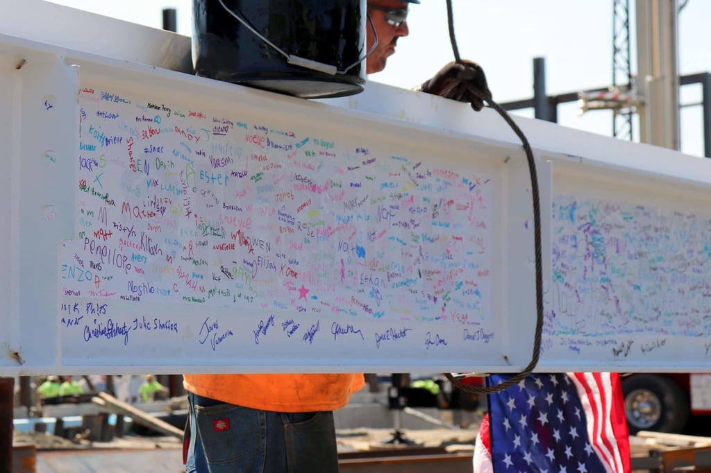 At the conclusion of the ceremony the beam was lifted by a crane and put into place on the building.