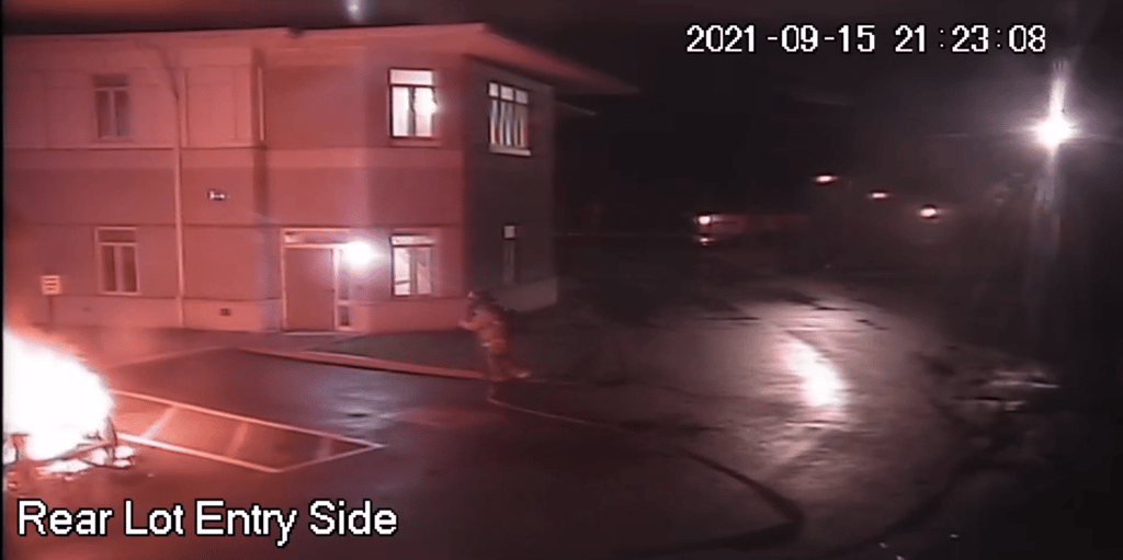 DRACUT — Chief Peter Bartlett is releasing video surveillance footage today of a suspicious fire that destroyed two police cruisers late Wednesday night, Sept. 15.