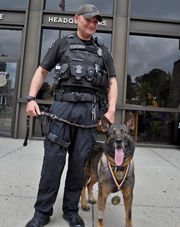 Springfield Police K9 Officer Eric Blair and his K9 partner Mr. Warner after receiving the North American Police Association’s Outstanding Service Award in 2019. (Photo courtesy Springfield Police Department)