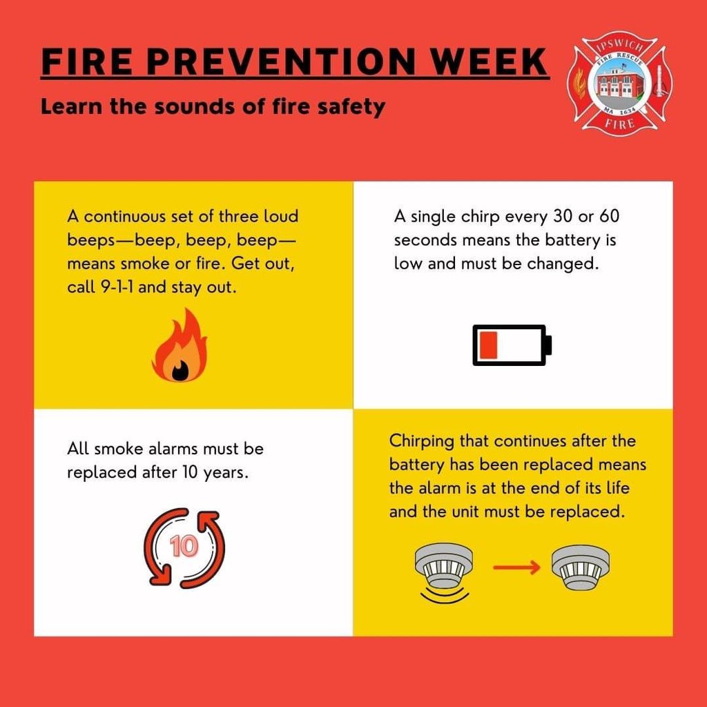 IPSWICH — Fire Chief Paul J. Parisi and the Ipswich Fire Department urge all residents to “Learn the Sounds of Fire Safety” and to follow these basic tips to help protect their loved ones during Fire Prevention Week, which is being recognized this year from Oct. 3 to 9.